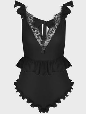 Lace and Fishnet Bodysuit OS - Black
