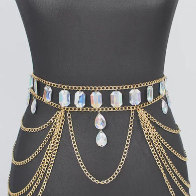 Metal Layered Chain Belt W/Acrylic Stone