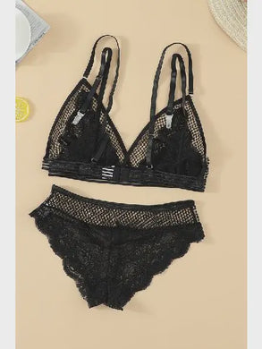 Mesh Patchwork Bralette Lingerie Set Black