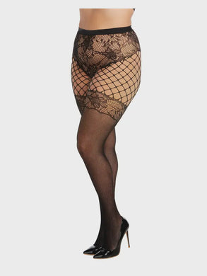 Plus Size Multi-Patterned Fishnet & Lace Pantyhose