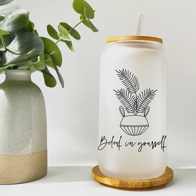 Plant Lovers, 16 oz Glass Cup, Plant Affirmations