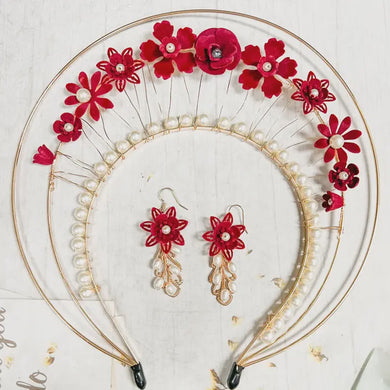 Rose Goddess Headband, Pearl Halo Crown, Crown Earrings Set